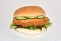 Sla, komkommer, sriracha mayonaise op een sesam bol.